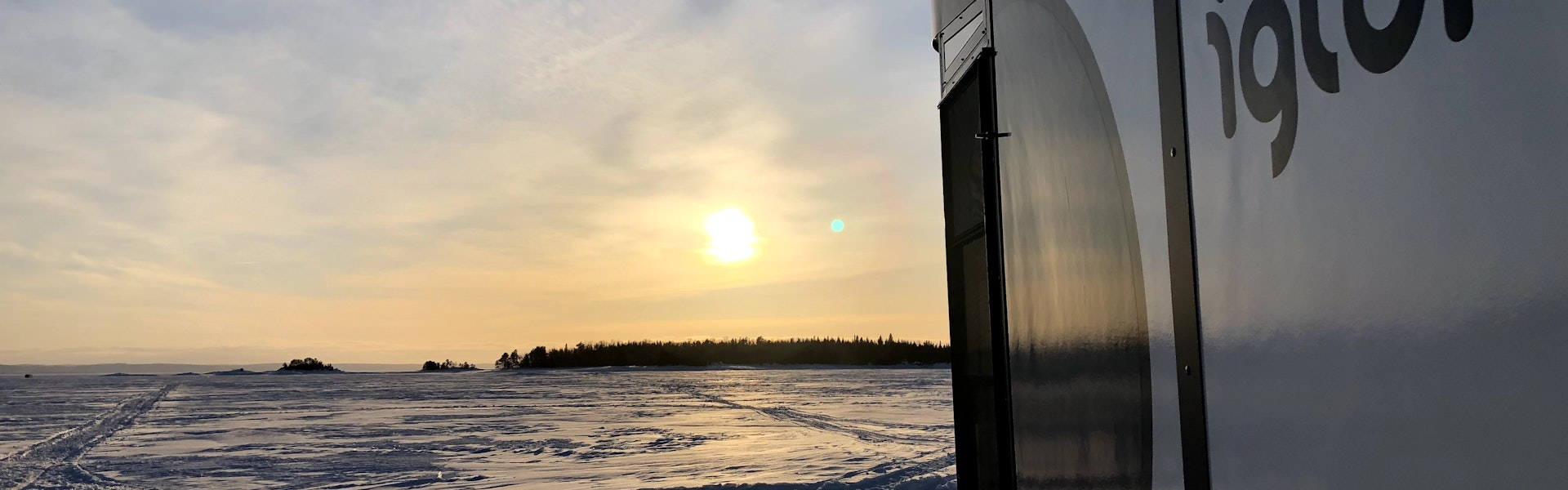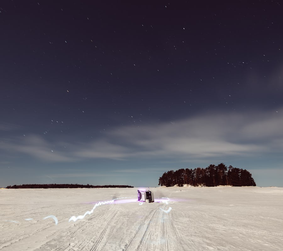 A winter night on the vast expanse of Lac Saint-Jean in unique accommodations typical of the region.